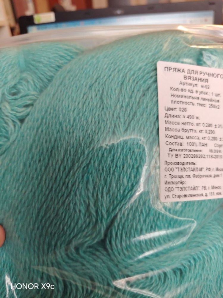 Пряжа в пасме. Цвет 026 светлая бирюза, 255 гр. Упаковки немного отличаются по граммам и метражу. Карачай 100% ПАН-волокно шерстяного типа, моток 255 гр. длина в мотке 446 м. (Россия)
